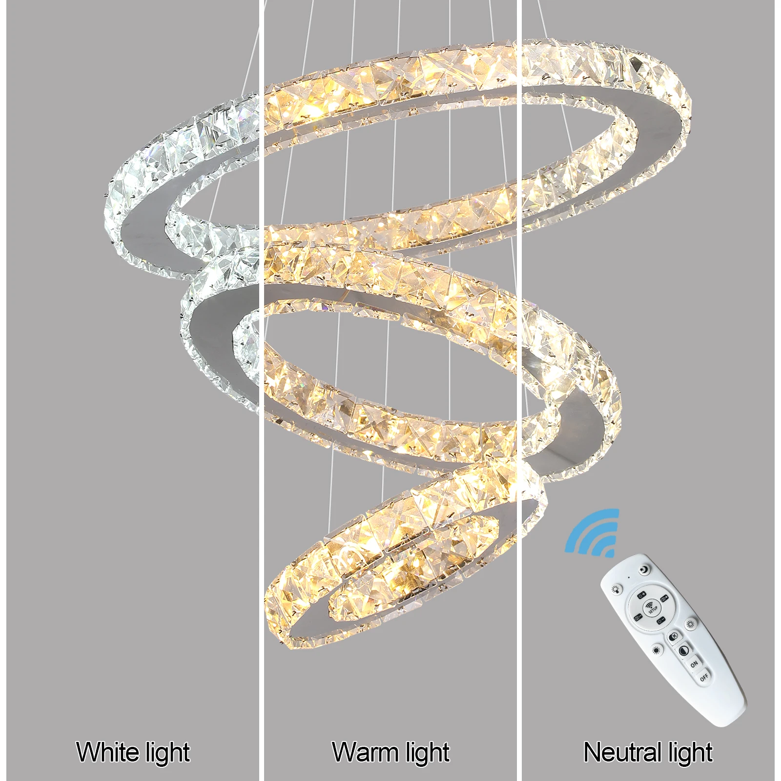 luxoluxoralightModern LED Lighting 3 Rings Hanging Crystal Chandelier Pendant Light