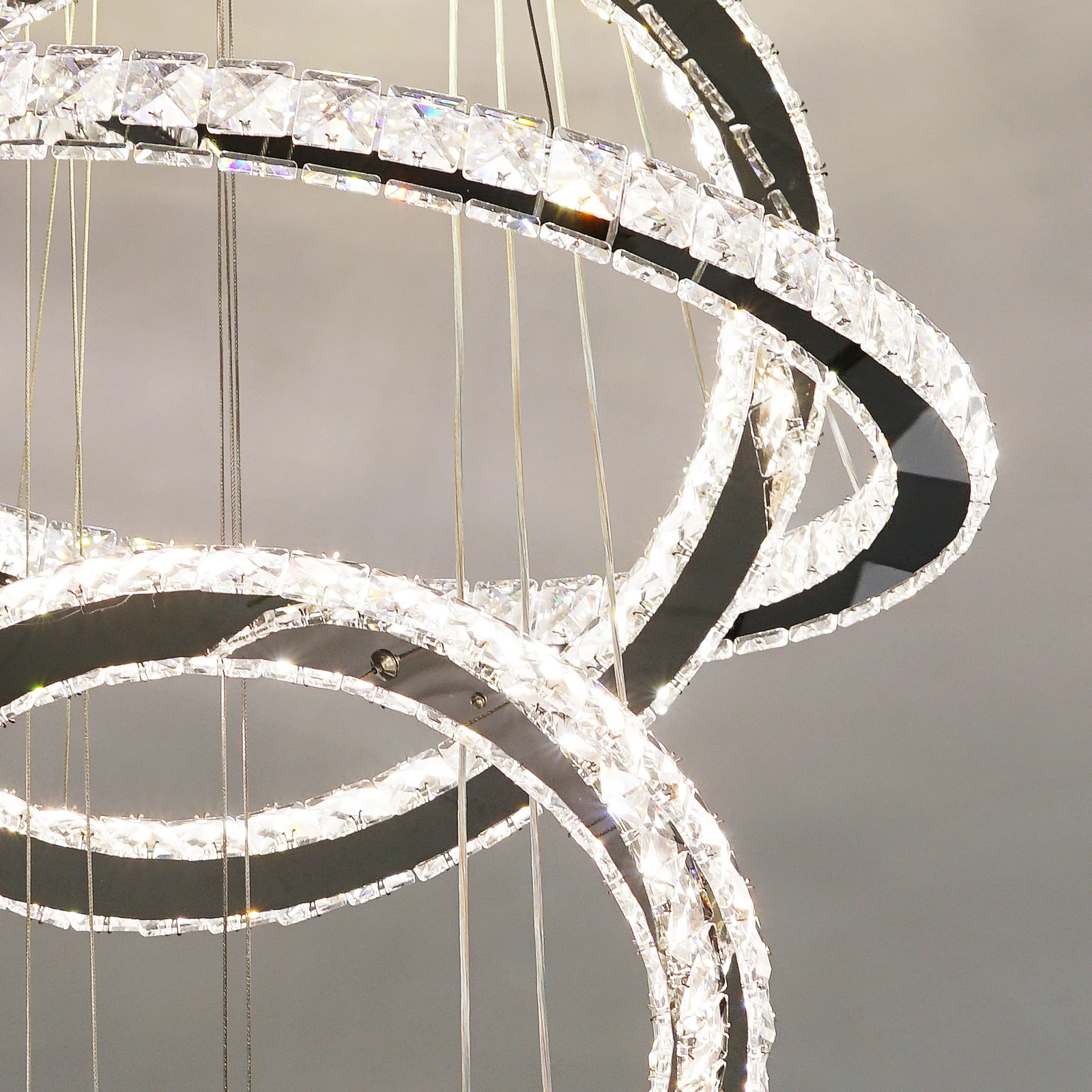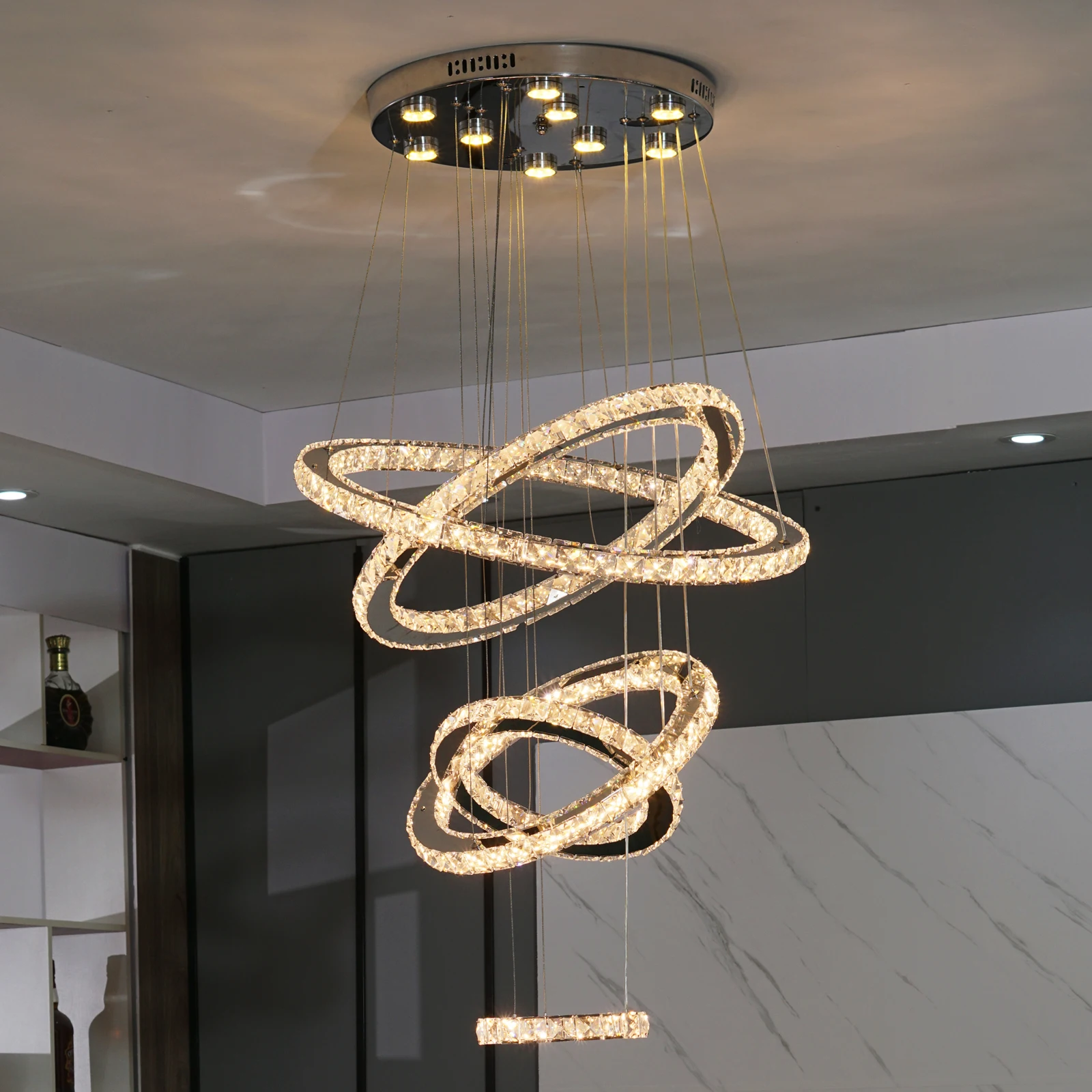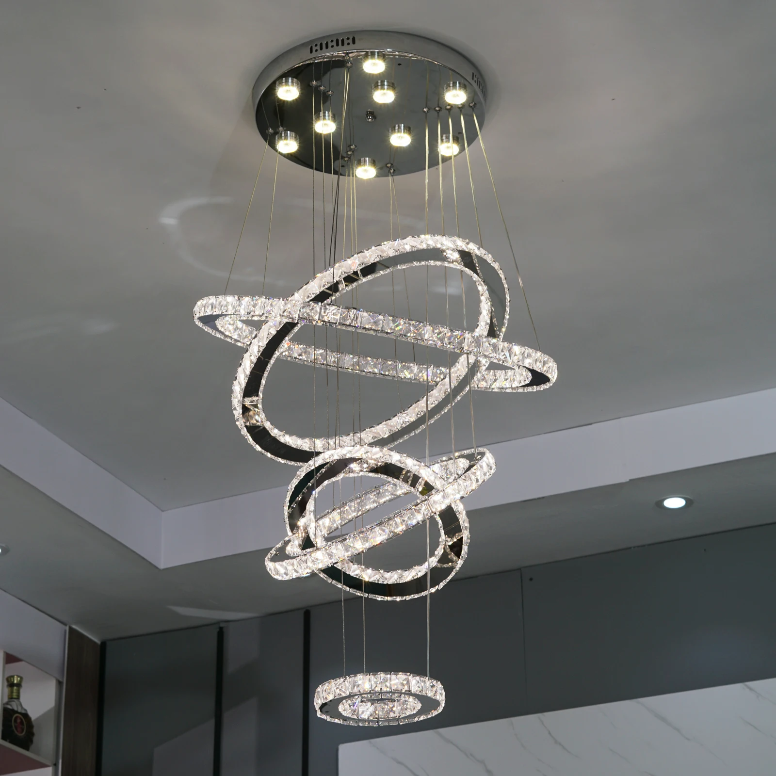 Stair Hanging Long Drop Light Crystal Pendant Lights Round Staircase Chandelier